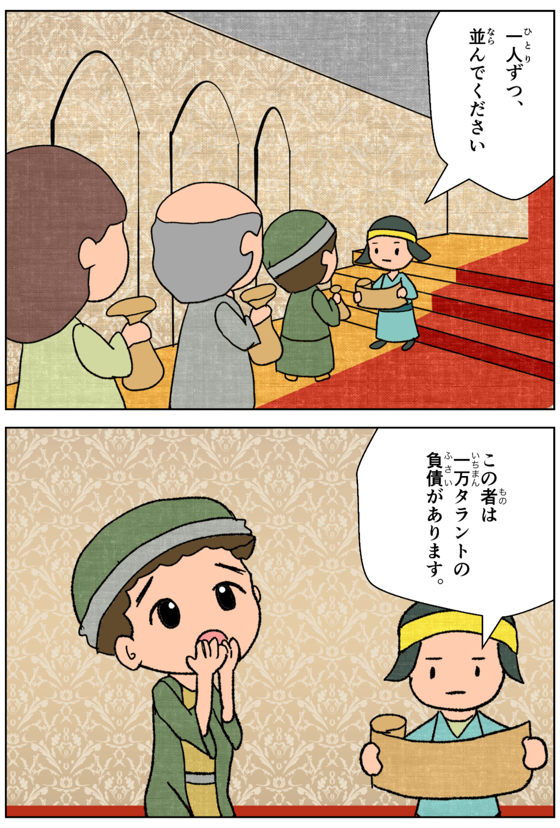 決算が始まると、一万タラントの負債のある者が、王のところに連れられてきた。