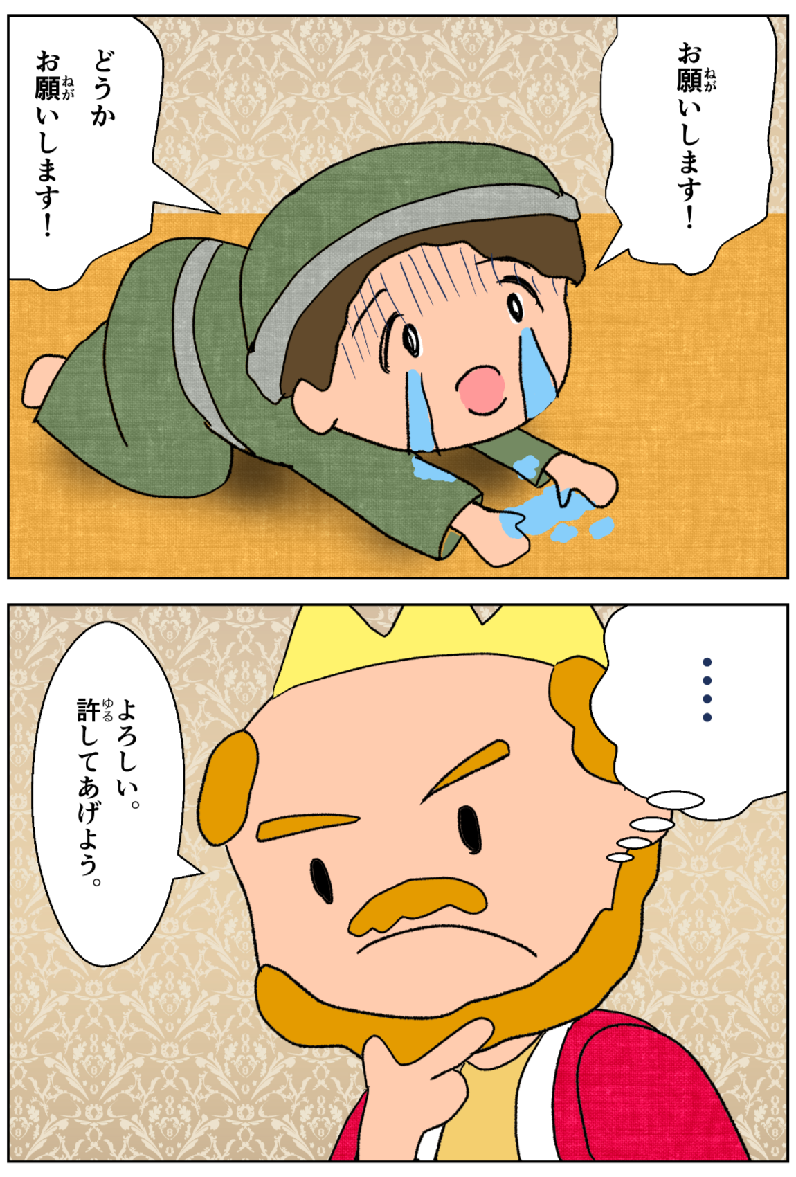 そこでこの主人は彼を呼びつけて言った、『悪い僕、わたしに願ったからこそ、あの負債を全部ゆるしてやったのだ。