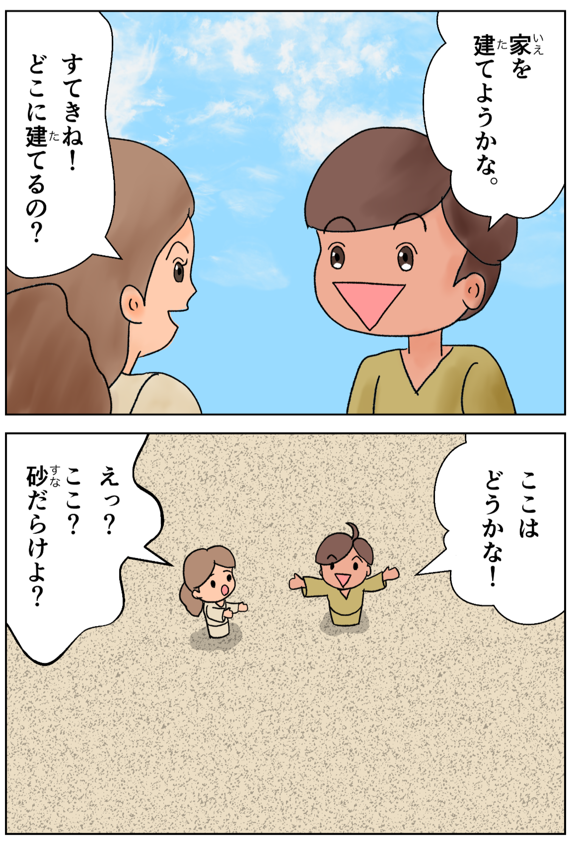 マンガ新約聖書 イエスのたとえ話「砂の上に自分の家を建てた愚かな人」を掲載しました!