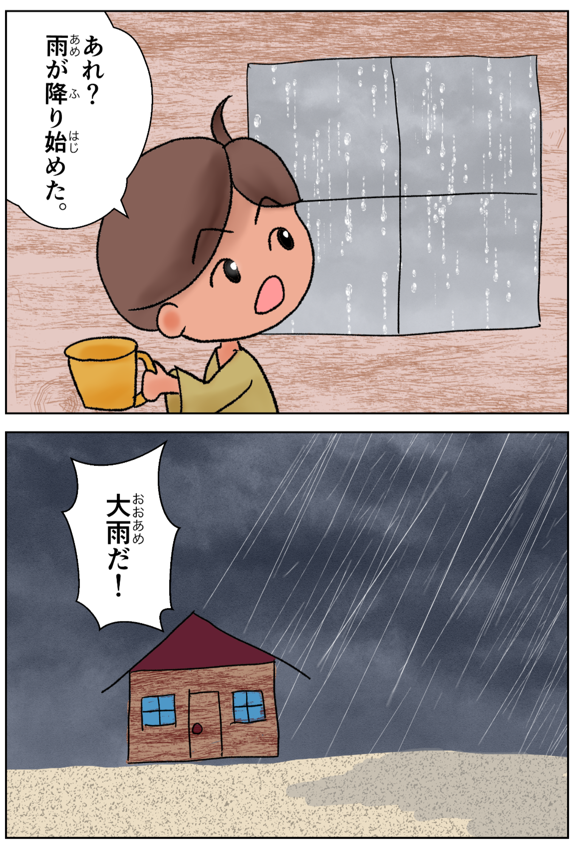雨が降り、洪水が押し寄せ、風が吹いてその家に打ちつけると、倒れてしまう。そしてその倒れ方はひどいのである」。